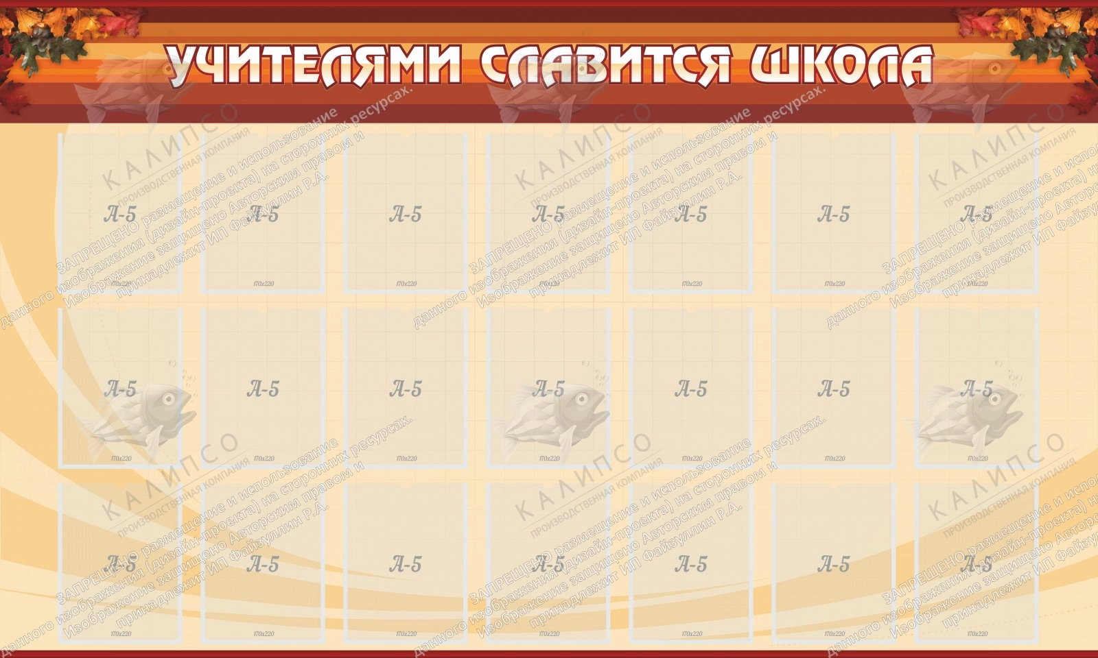Оригинальный стенд «Учителями славится школа» должен присутствовать в каждой школе, ведь то, что учителя делают для наших детей должно быть оценено не только в размере заработной платы, но и отдельным местом на доске почета. Сравнительно небольшой стенд вмещает 21 карман формата А5, этого вполне достаточно, чтобы разместить фотографии учителей с ФИО. Красивое и почетное название стенда украшено небольшим цветочным рисунком, а фоновый цвет имеет теплый кремовый оттенок. Такая модель стенда гармонично будет смотреться в главном холле школы, а также прекрасно впишется в любой дизайн интерьера.