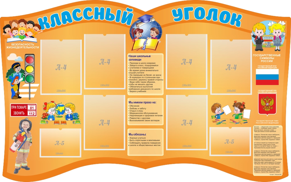 Стенд "Классный уголок" с 6 карманами, резной арт. ШК-0496