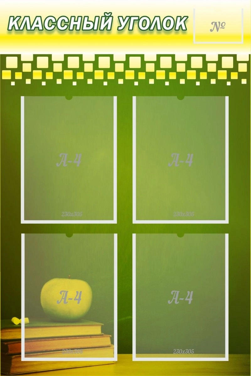 Каждый учебный класс характеризуется своими уникальными особенностями. И чем старше становятся ученики, тем более деловой стиль должен присутствовать во всех окружающих предметах. Данный стенд подойдет больше для старшеклассников, так как он выполнен в официальном стиле. У него темно-зеленый фон, что придает ему определенной строгости. Также у этого стенда нет конкретных назначений на его четыре карманчика. Таким образом, он не ограничен рамками, и в нем можно помещать различную информацию. Стенд выполнен в горизонтальном положении, что позволяет его удобно разместить на узком участке стены.