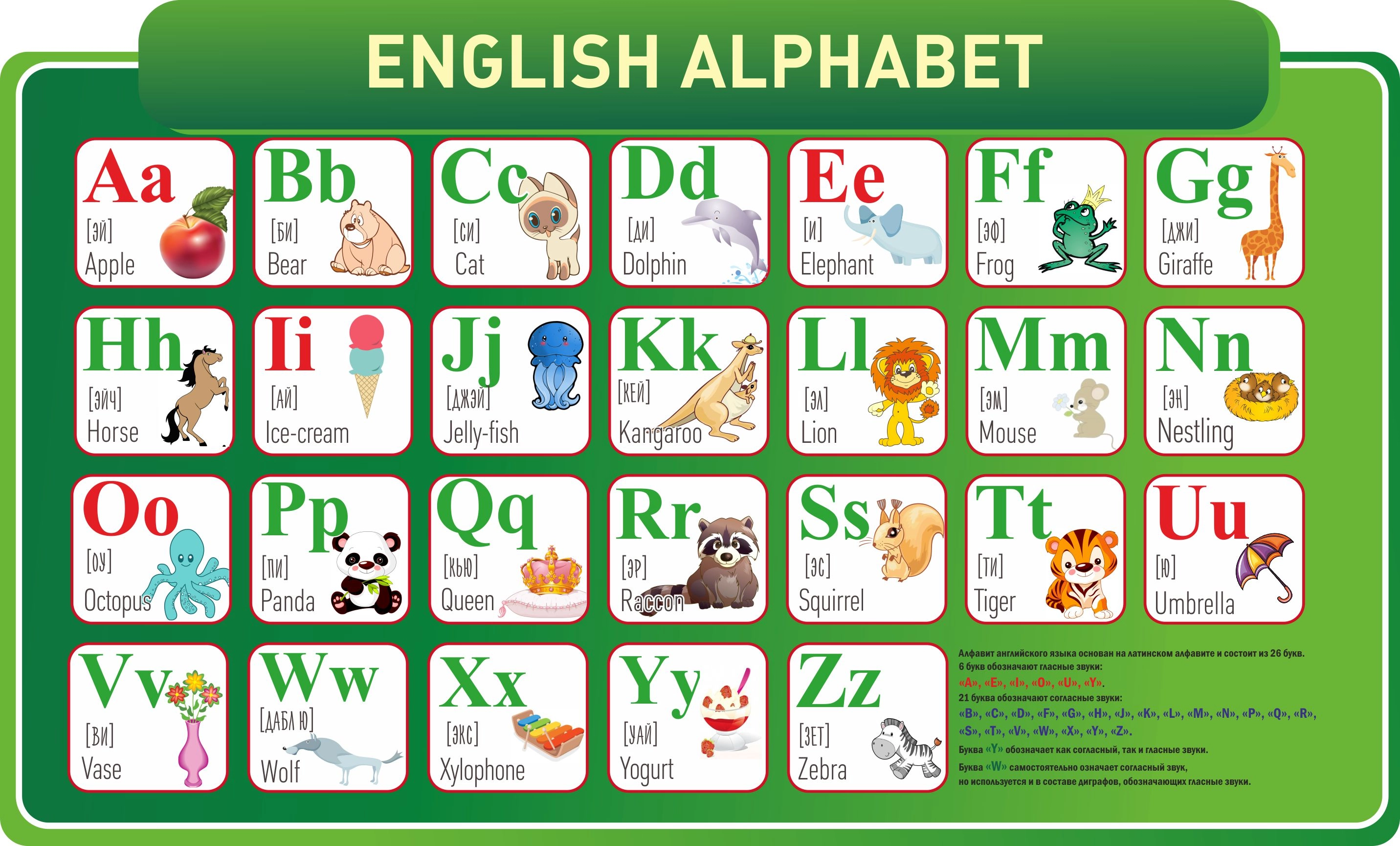 С таким стендом детям будет не только легко запомнить такой трудный и непонятный английский алфавит, но и интересно выполнять задания учителя. А Вы сможете ярко и необычно украсить классную комнату или зал для занятий английским языком.