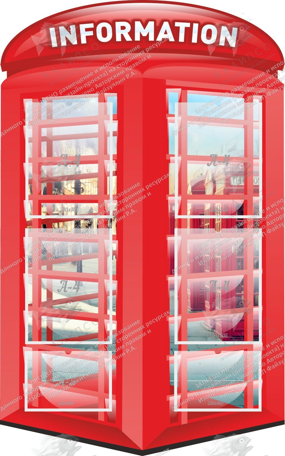 Школьный резной твёрдый стенд "ИНФОРМАЦИЯ", выполненный в виде традиционной английской телефонной будки, станет центральным украшениям холла или учительской любой школы, учебного центра, университета или училища.