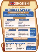 Употребление косвенной речи, согласование времен и модальные глаголы, такие сложные местоимения и наречия, нужные примечания – всё это в максимально удобной форме расположено на резном стенде от производственной компании «Калипсо».