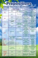 Производственная компания «Калипсо» предлагает своим постоянным и новым клиентам стенд с четкой и понятной таблицей предлогов в английском языке, примерами их употребления и правильным переводом предложений, в которых употребляются предлоги.