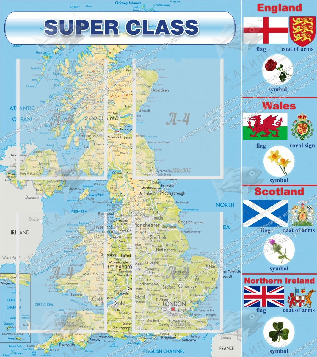 На данном стенде изображена карта соединенного королевства со всем странами, входящих в состав королевства, их флагами, гербами и национальными символами, что поможет ученикам не только выучить английский, но и стать всесторонне развитыми. Так же стоит отметить, что на этом стенде есть удобные кармашки, что делает этот стенд многофункциональным и практичным. На нем можно размещать любую информацию, которую только пожелает учитель: новости класса, подготовка к экзаменам, мини- шпаргалки для учеников и многое другое. Стенд изготовлен из высококачественного материала, что поможет ему прослужить долгие годы.