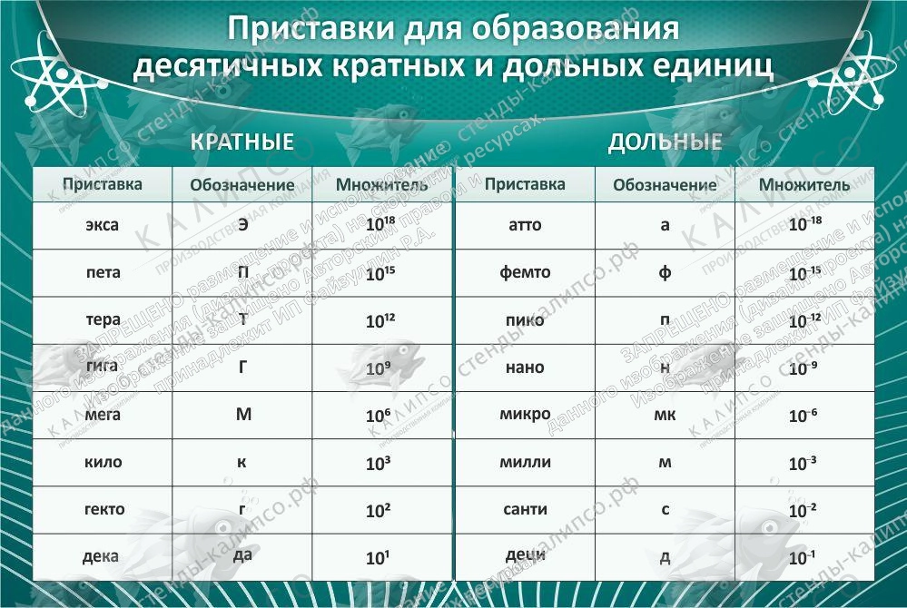 Стенд "Приставки для образования десятичных кратных и дольных единиц" арт. ШК-2122