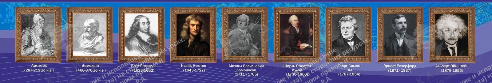 Физика — интересный и увлекательный предмет, который преподается в каждом образовательном учреждении. Стенд «Великие физики» выполнен для учащихся, которые интересуется физикой и хотят узнать о ней больше. На стенде изображены девять самых популярных и известных физиков всего мира, которых каждый ученик должен знать в лицо. Фоновый дизайн изготовлен так, чтобы стенд мог выделятся и позволял запомнить место его расположения в кабинете. Стенд выполнен из качественного и легкого материала ПВХ, который легко крепится на скотч или небольшие саморезы на поверхность любой стены.