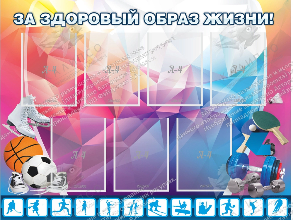Стенд "За здоровый образ жизни" с 7 карманами арт. ШК-2949