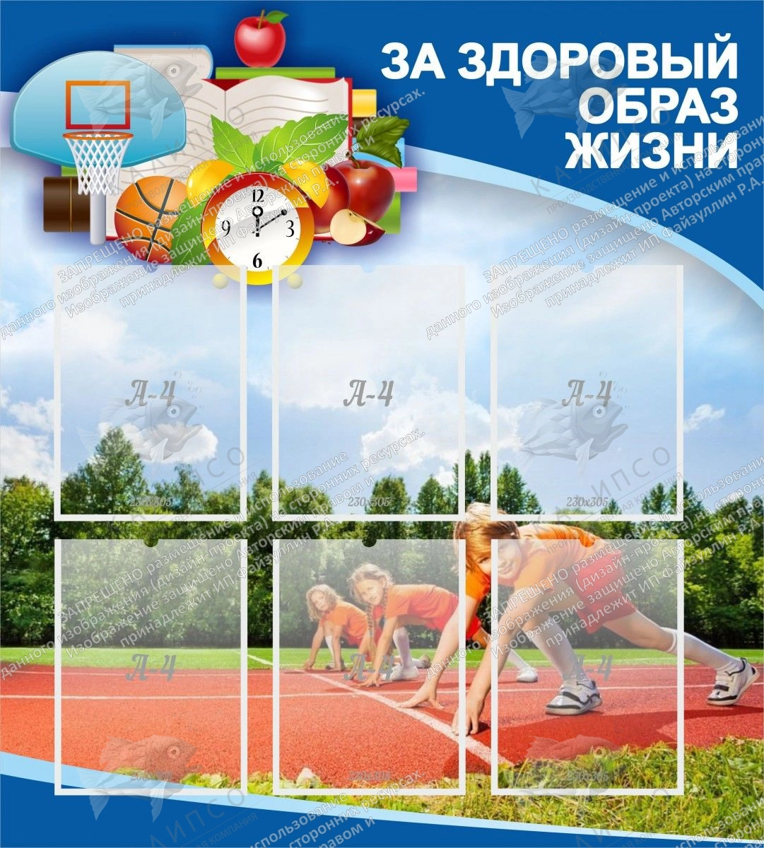 Стенд "За здоровый образ жизни" с 6 карманами арт. ШК-2948