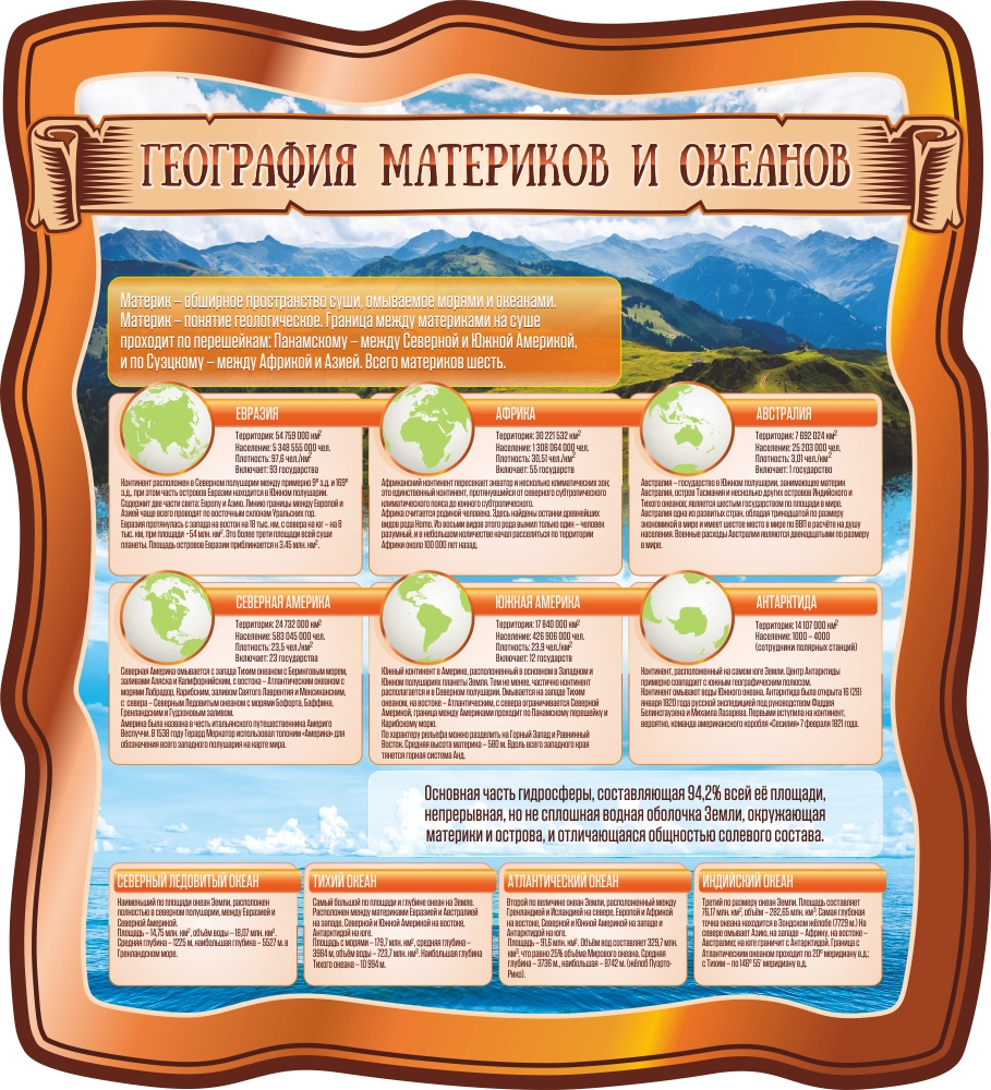 Стенд "География материков и океанов" , резной арт. ШК-8851