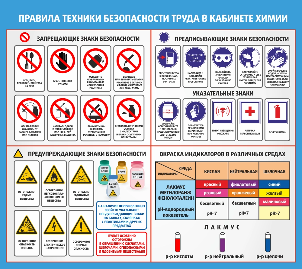 Стенд "Правила техники безопасности труда в кабинете химии" арт. ШК-2327