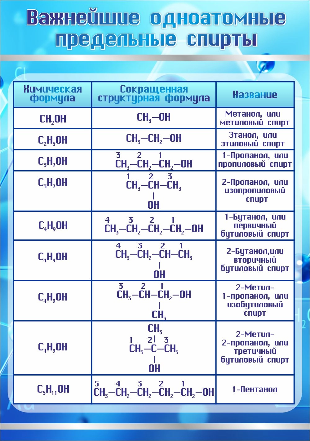 Стенд "Важнейшие одноатомные предельные спирты" арт. ШК-2326