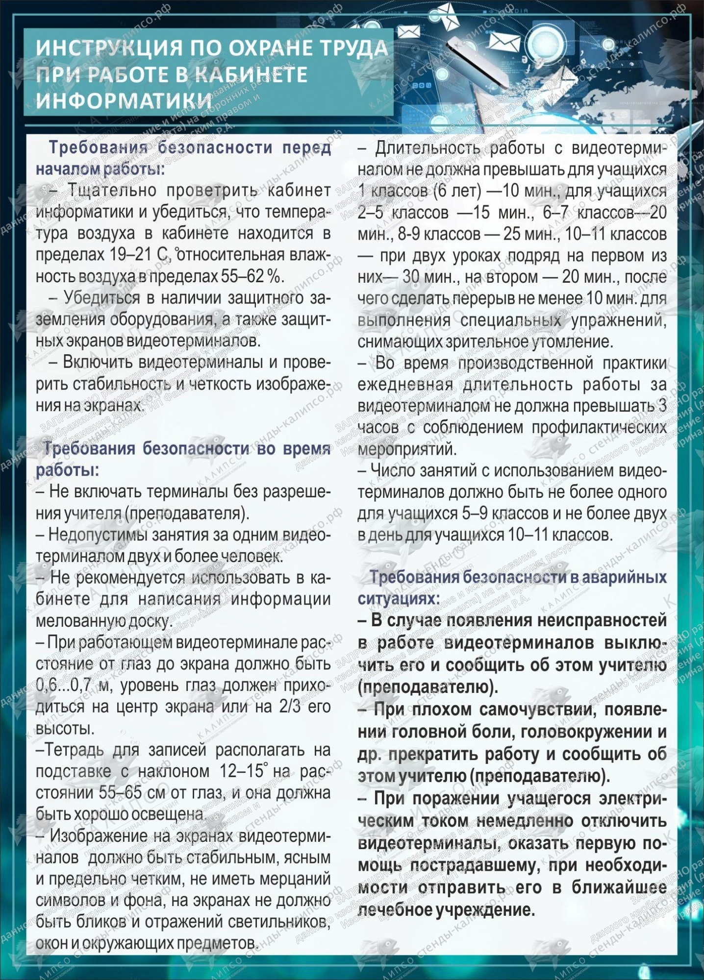 Стенд "Инструкция по охране труда в кабинете информатики" арт. ШК-1021