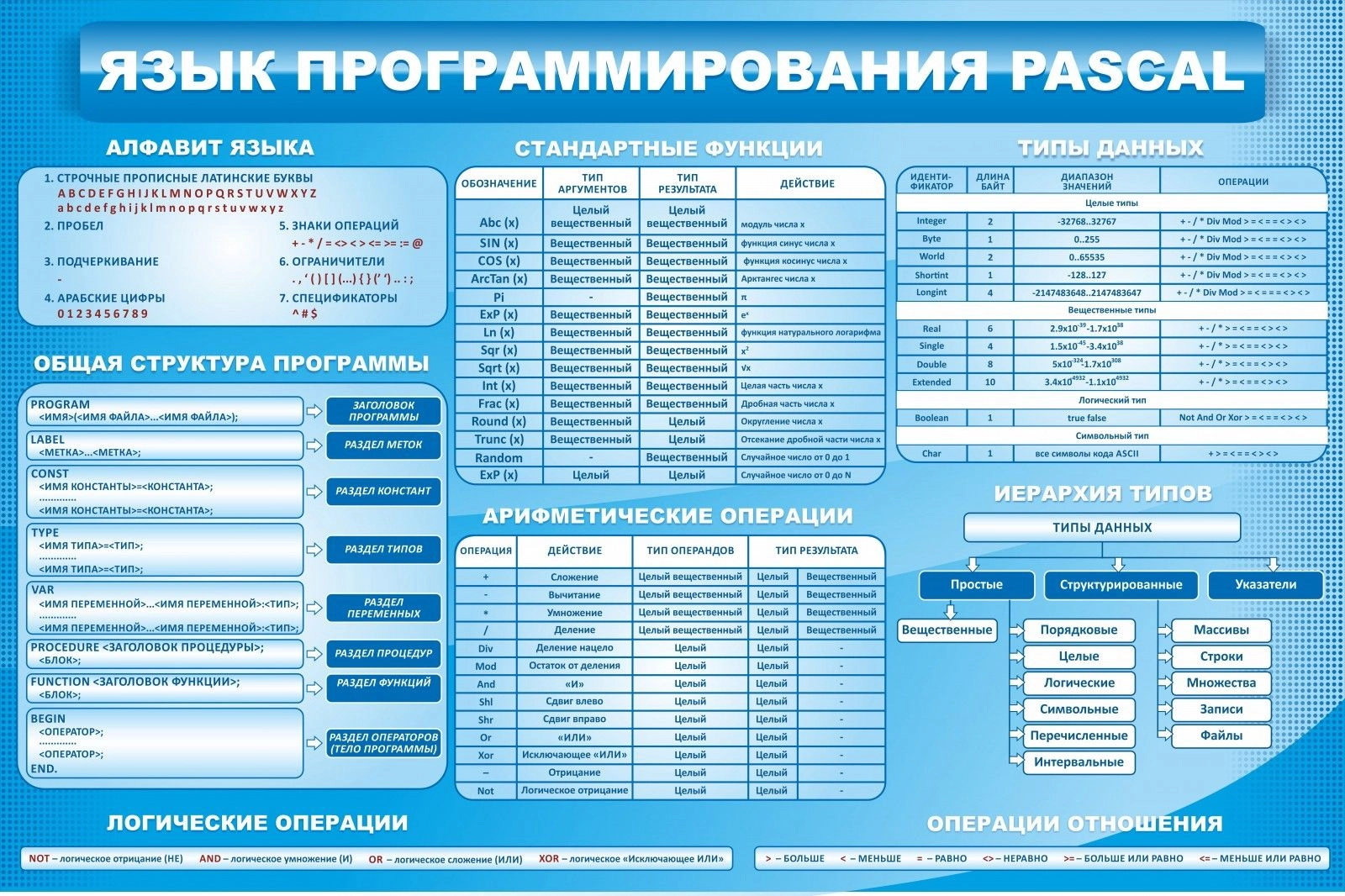 Доступные таблицы по теме, указанной в названии стенда, даны во всех подробностях, и доступны для понимания. Каждому школьнику будет полезно изучить информацию, указанную на этом стенде. Все арифметические операции, алфавит этого особенного языка, стандартные функции и много иной информации по теме. Данные сведения помогут каждому обучающемуся, намного лучше разбираться в теме стенда. Иногда, даже самые простые, на первый взгляд, сведения, забываются мимолетно. А доступные детскому пониманию таблицы, помогут школьникам легче ориентироваться во всех вопросах, столь сложного, но интересного предмета, как информатика!