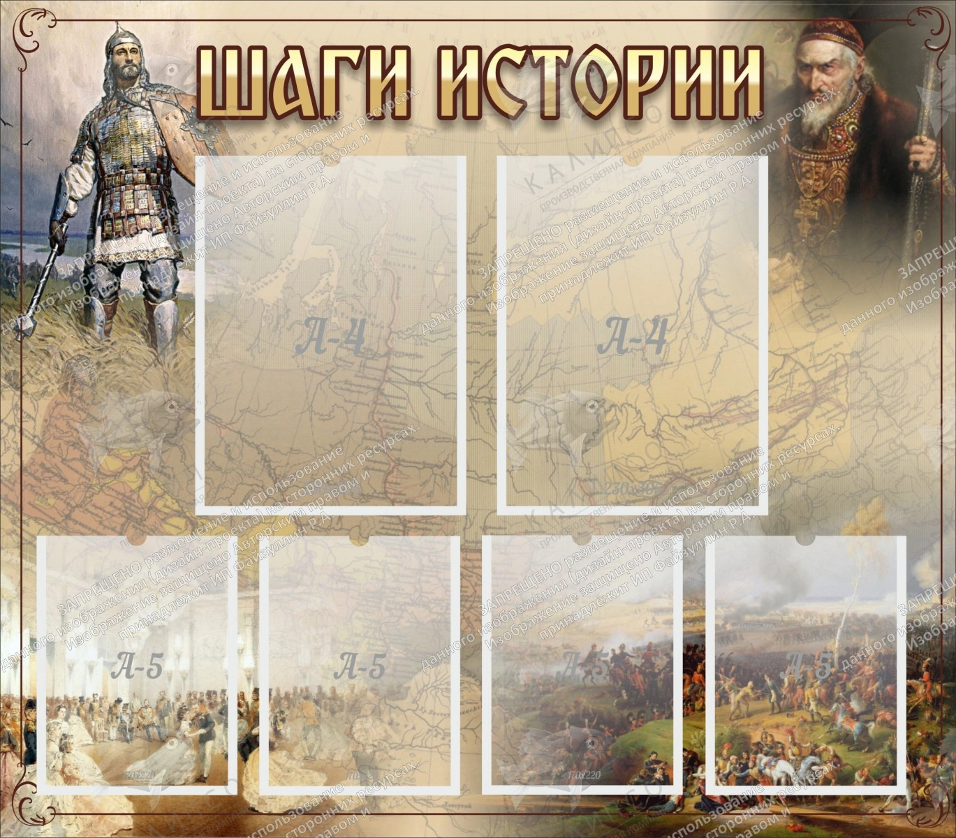 Стенд "Шаги истории" с 2 карманами арт. ШК-1146