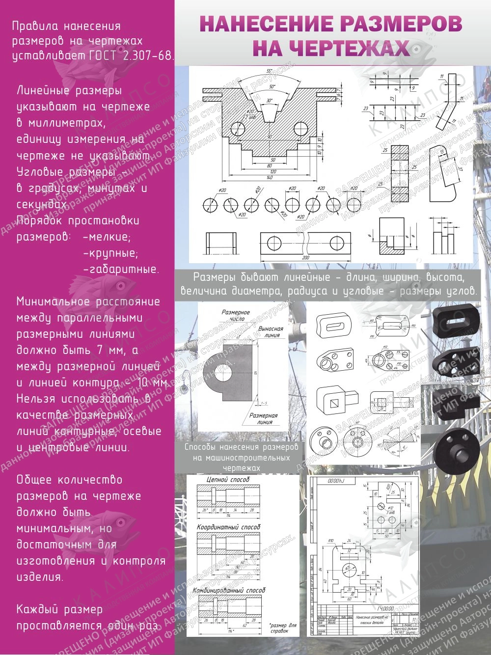 Стенд "Нанесение размеров на чертежах" арт. ШК-0907