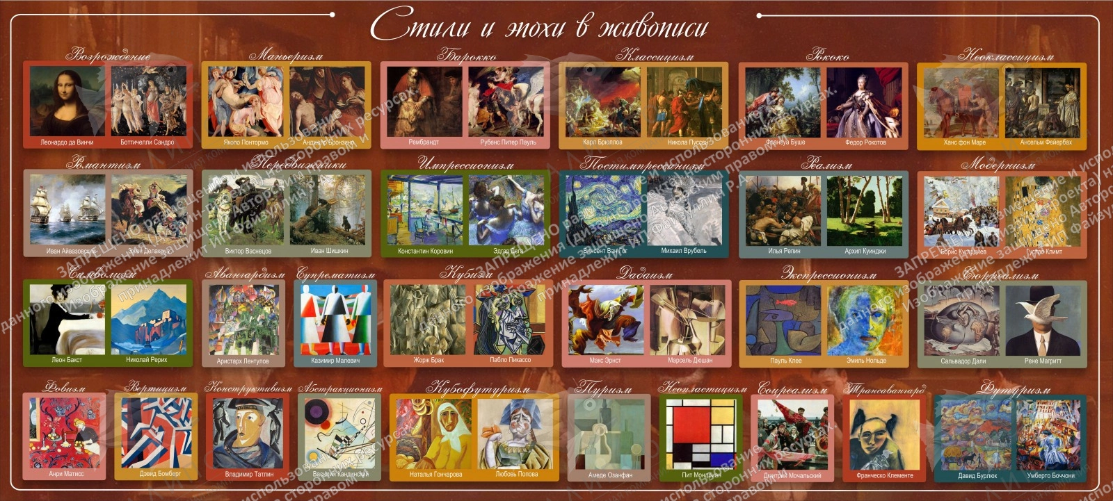Стенд "Стили и эпохи в живописи" 2.55x1.15 арт. ШК-0930