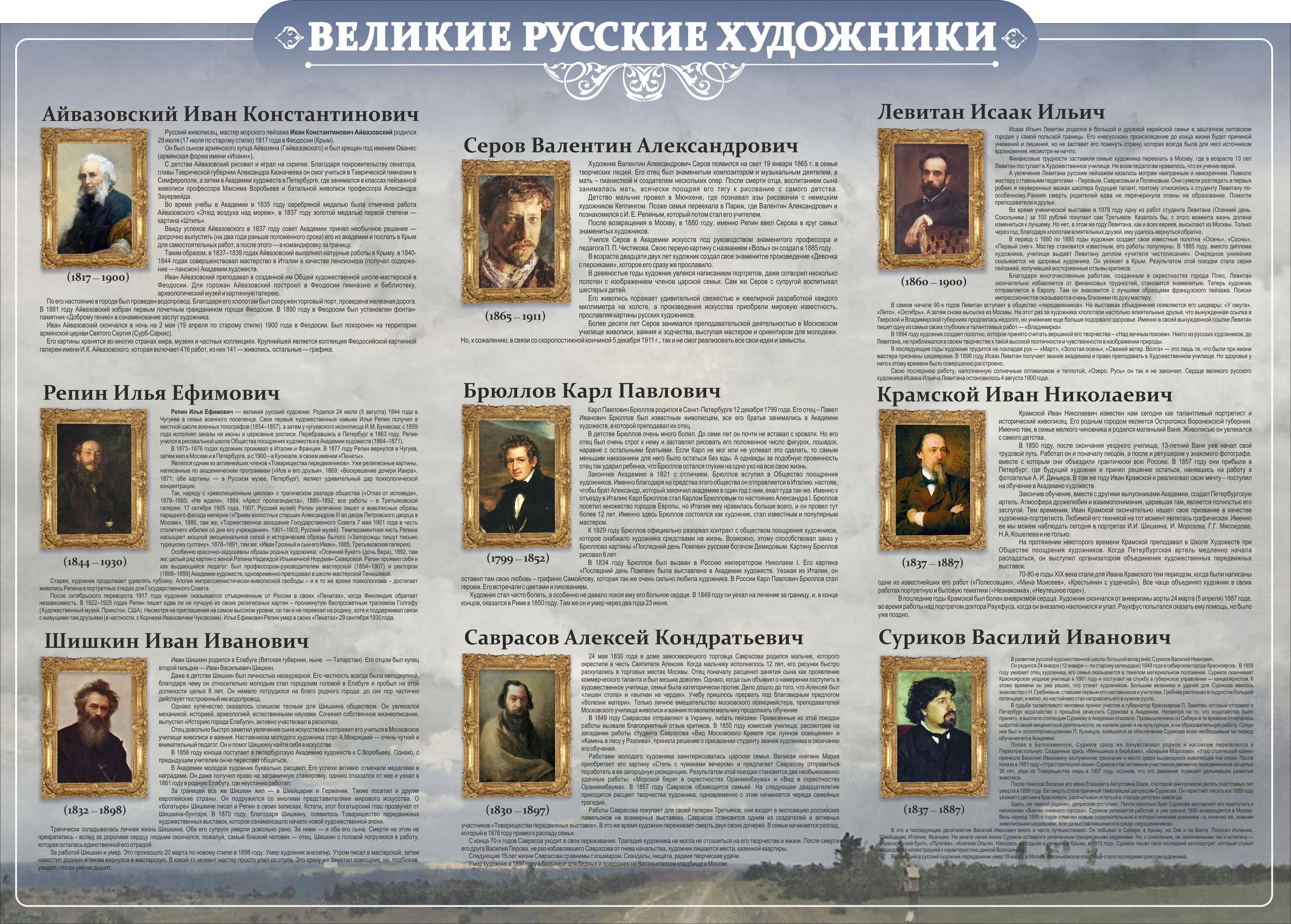 Стенд резной "Великие русские художники" арт. ШК-0918