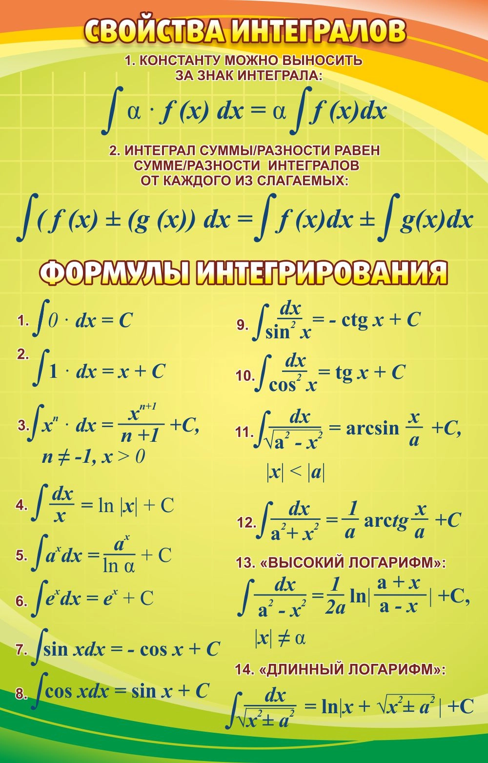 Стенд "Свойства интегралов" арт. ШК-1368