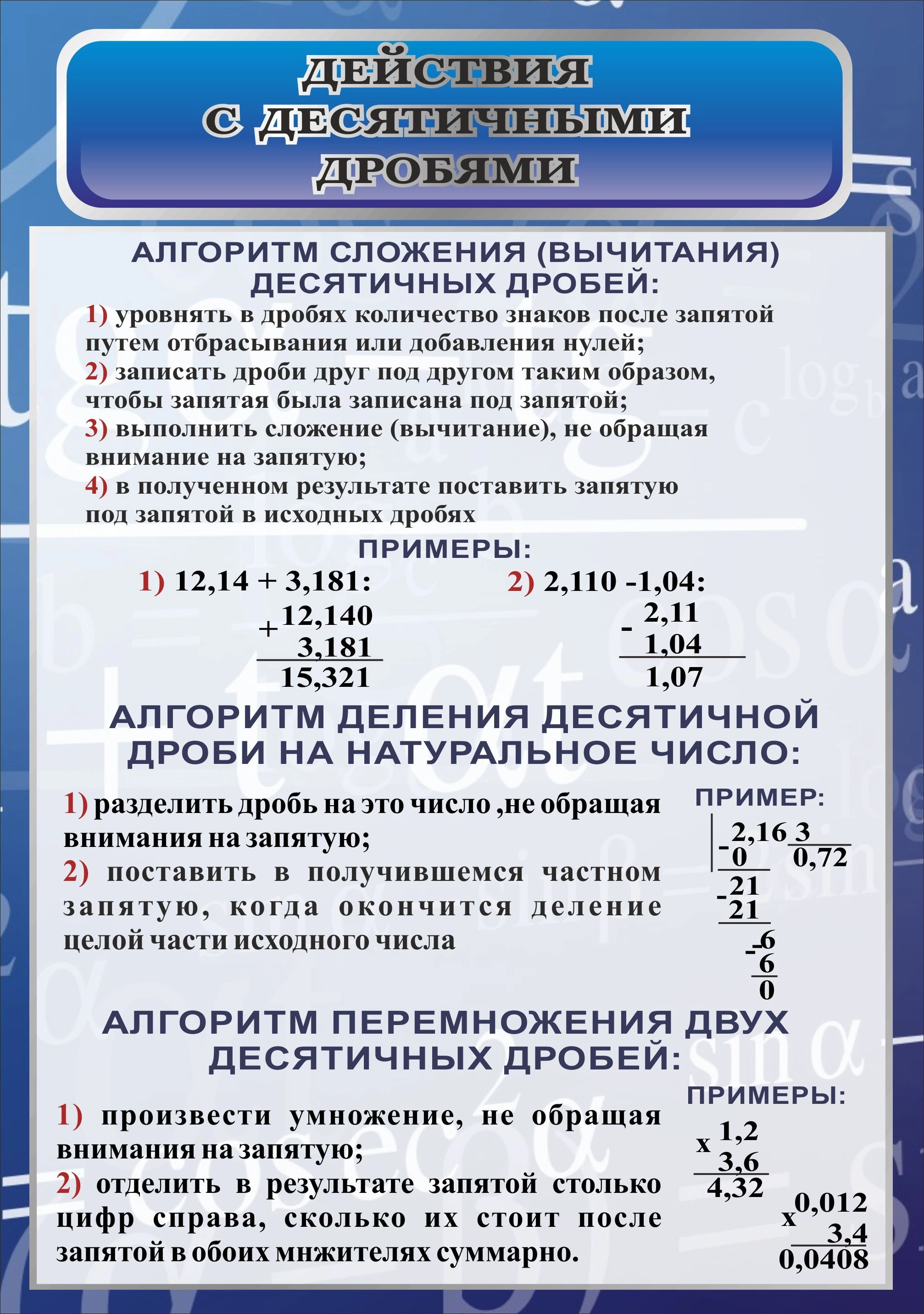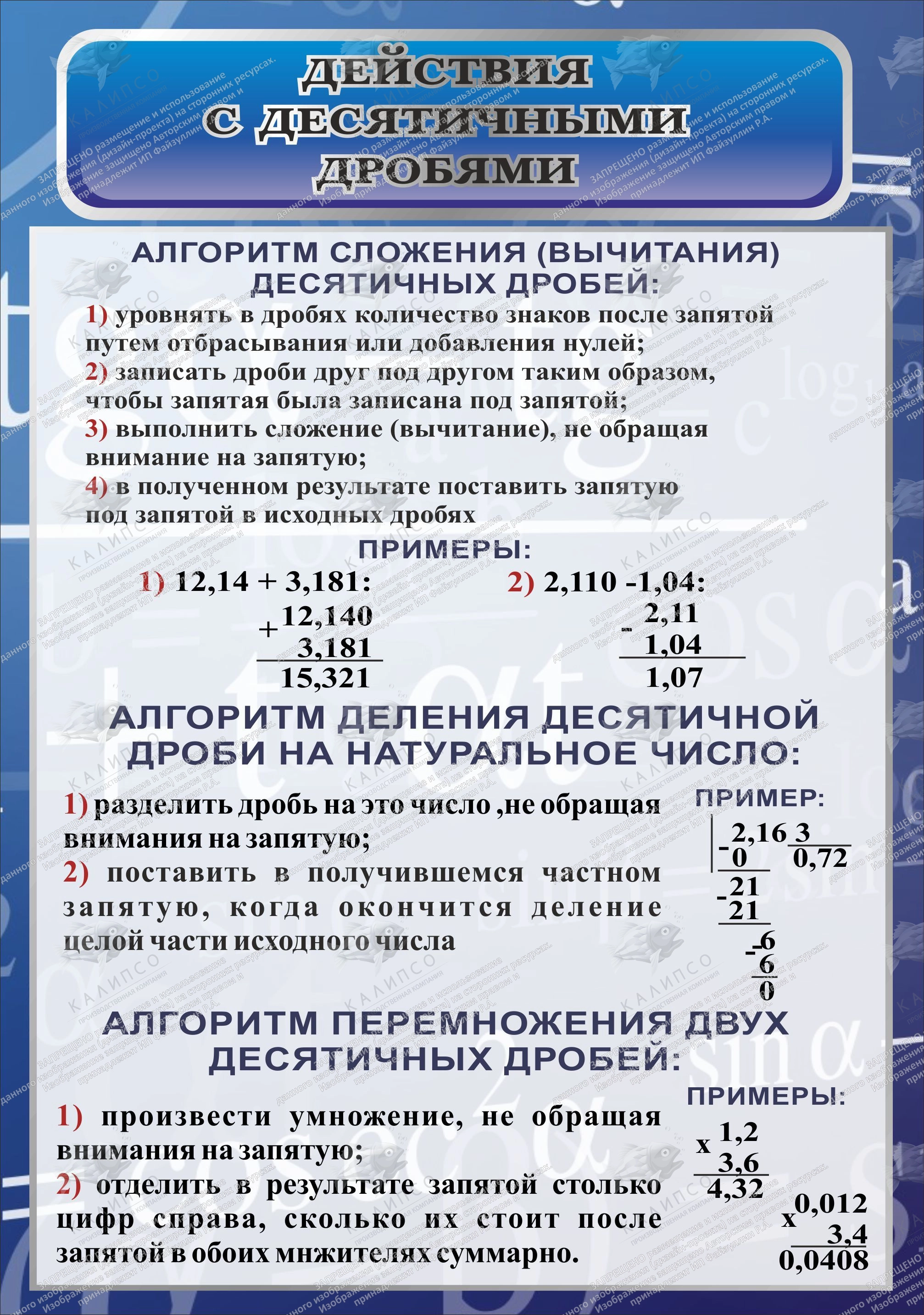 Стенд "Действия с десятичными дробями" арт. ШК-1352