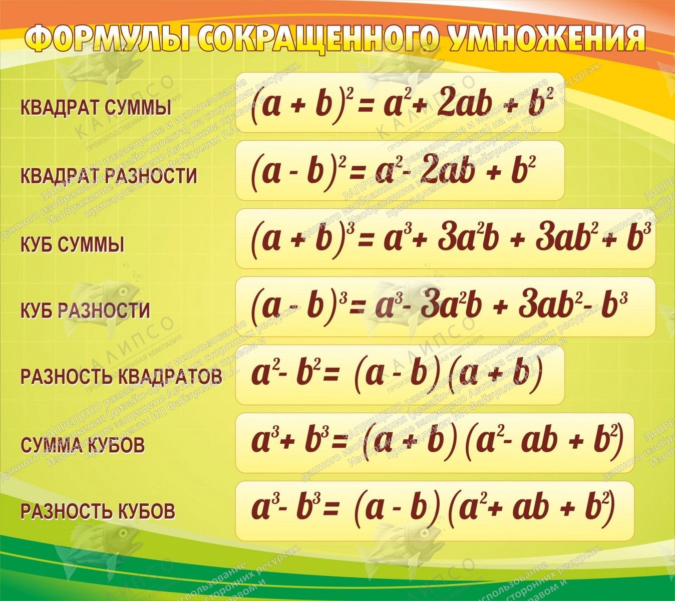 Стенд "Формулы сокращенного умножения" арт. ШК-1334