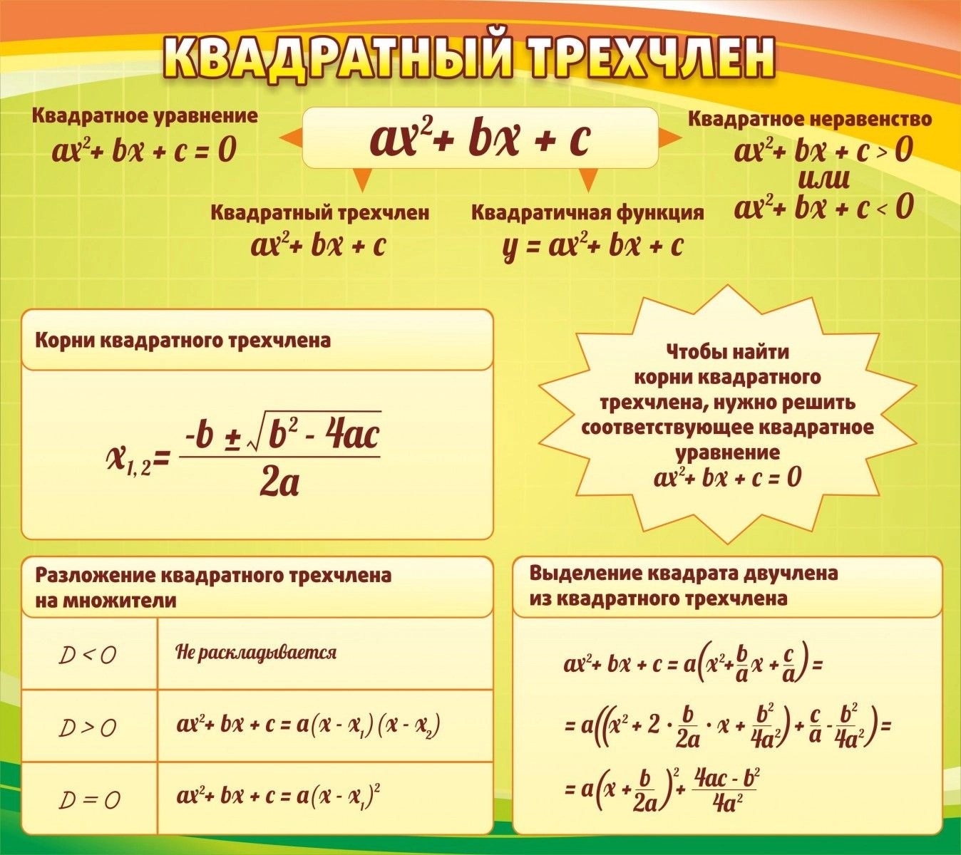 Стенд "Квадратный трехчлен" арт. ШК-1335
