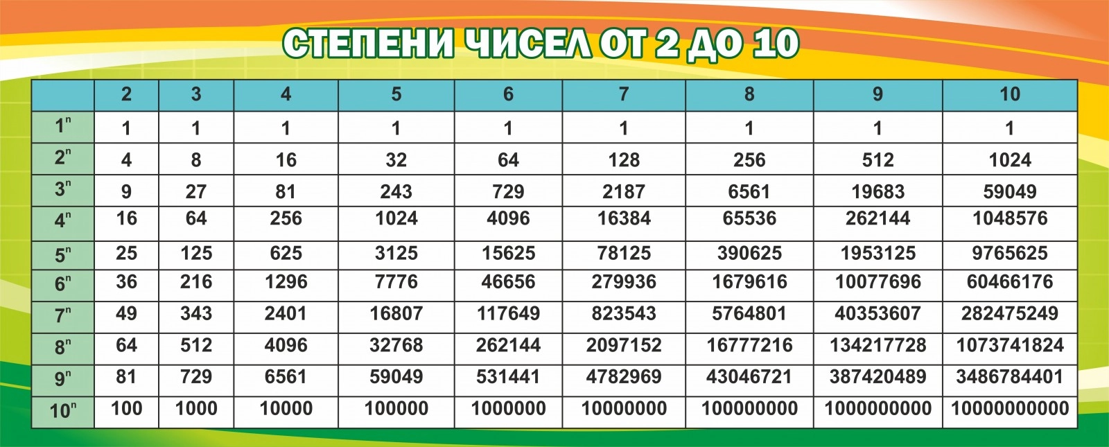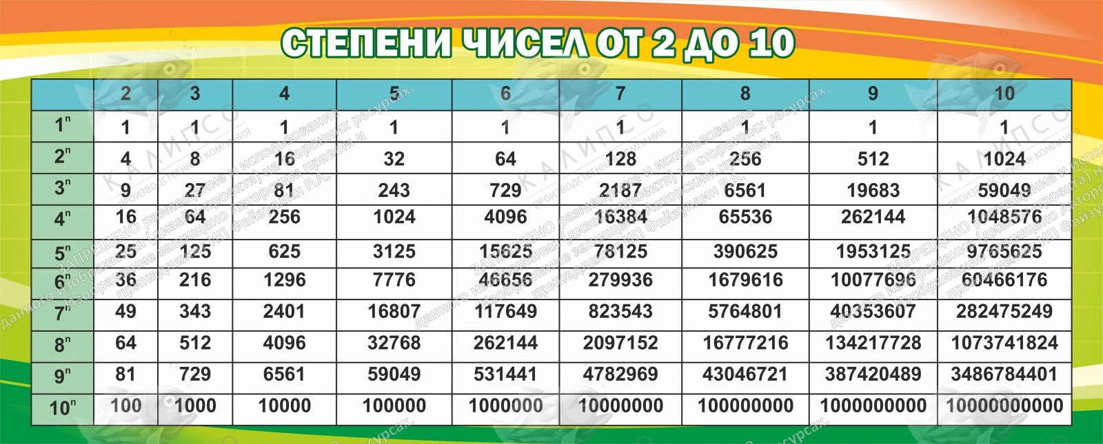 Стенд "Степени чисел от 2 до 10" арт. ШК-1347