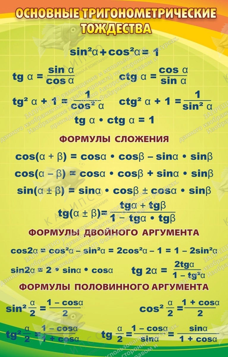 Сложно это или нет, решать определенным ученикам, так как каждый из школьников, наверняка ответить по-разному. Тем не менее, факт - без «синусов» и «косинусов», жизни представить в дальнейшем, не сможет ни один ученик. По крайней мере, собственной жизни в школьное время. И, безусловно, любому среднему учебному заведению, нужно позаботиться о том, чтобы ученики лучше запоминали основы основ, по теме довольно непростой, но интересной. Стенд с ярким дизайном, похожим на оперение разноцветного попугайчика, не будет отвлекать от серьезного отношения к названной теме. Так что формулы двойного аргумента, ровно, как и половинного, запомнятся на ура!