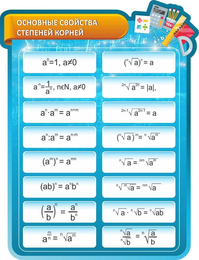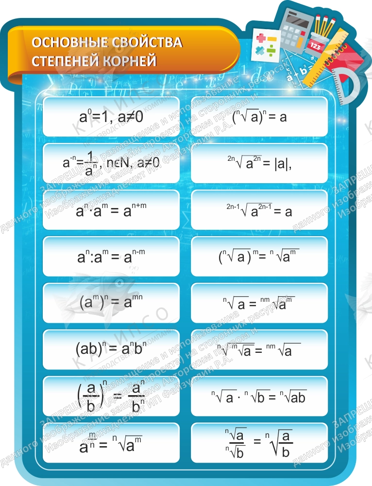Стенд "Основные свойства степеней корней", резной арт. ШК-1371