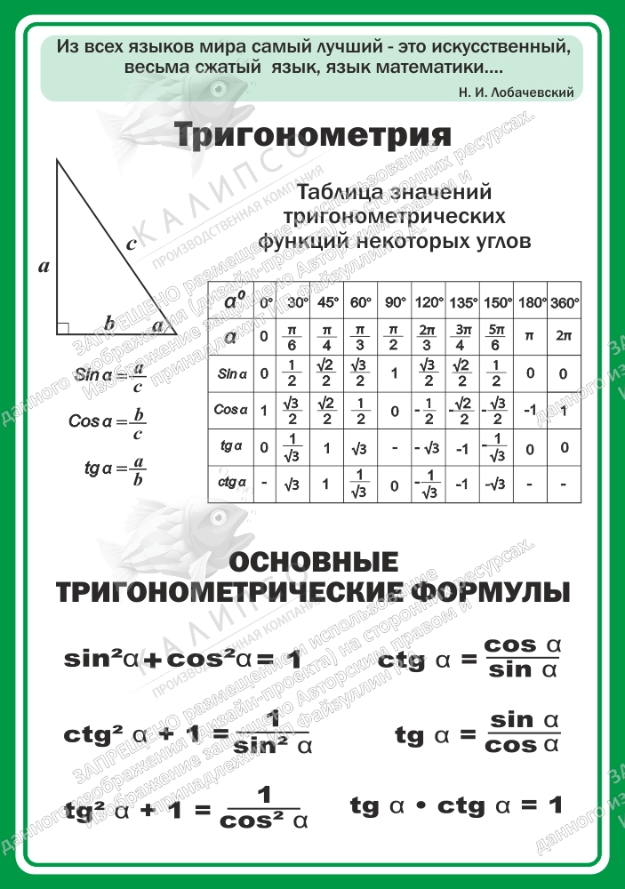 Стенд "Тригонометрия" арт. ШК-1359