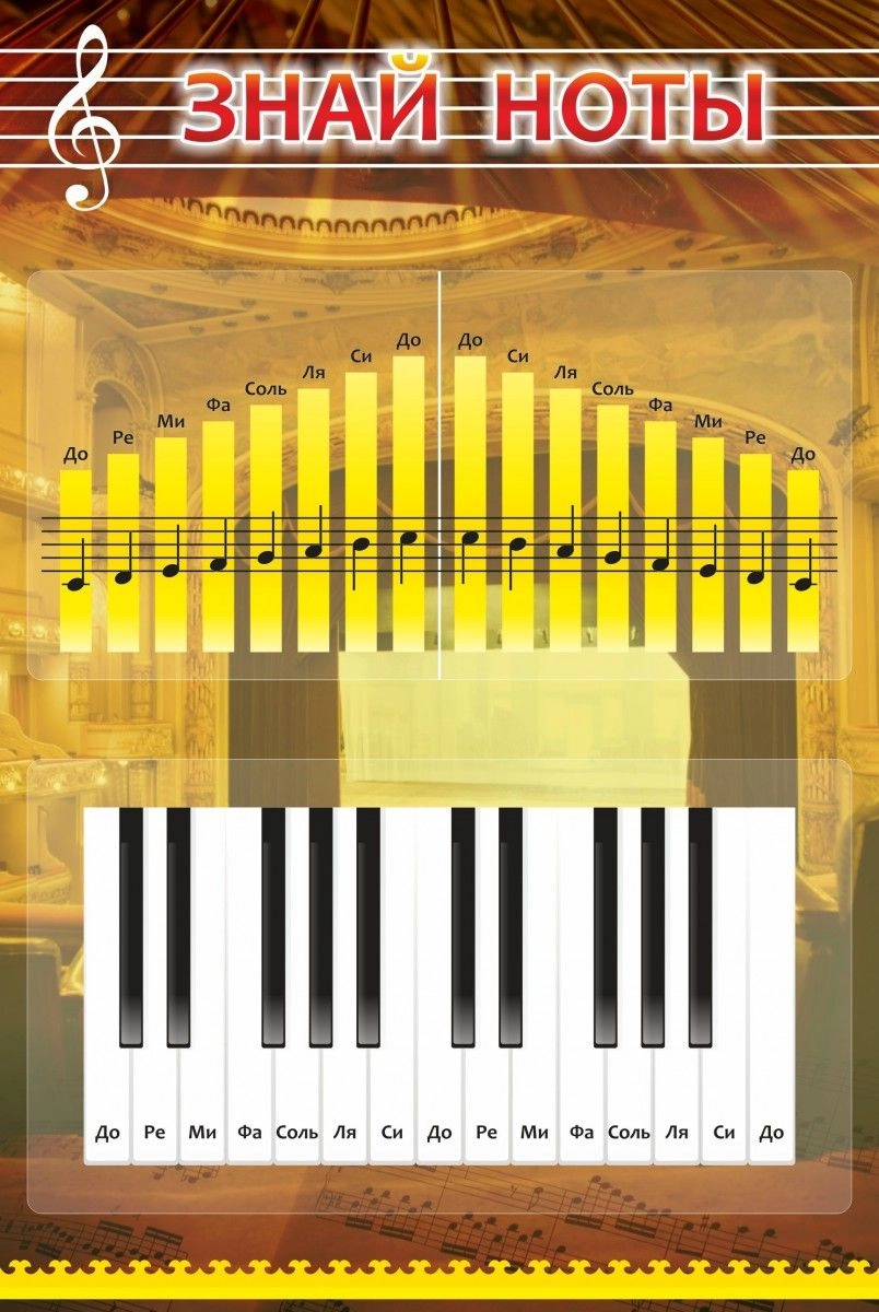 Итак, нотное перечисление, которое отлично подойдет для предмета «Сольфеджио». Любой музыкальный кабинет, можно украсить таким стендом. Даже актовый зал, ведь именно в нем, обычно проходят уроки пения. Нотная гамма не может остаться без внимания преподавателей и учеников, если она находится в правильном месте. Стенд с прекрасным дизайном не только украсить стены, но и послужит для дельного запоминания учениками этой темы. Правда, только поначалу, музыка кажется такой легкой. Но это уже совсем иная история. А стенды музыкальной тематики, так же необходимы, как и стенды, связанные с другими уроками.