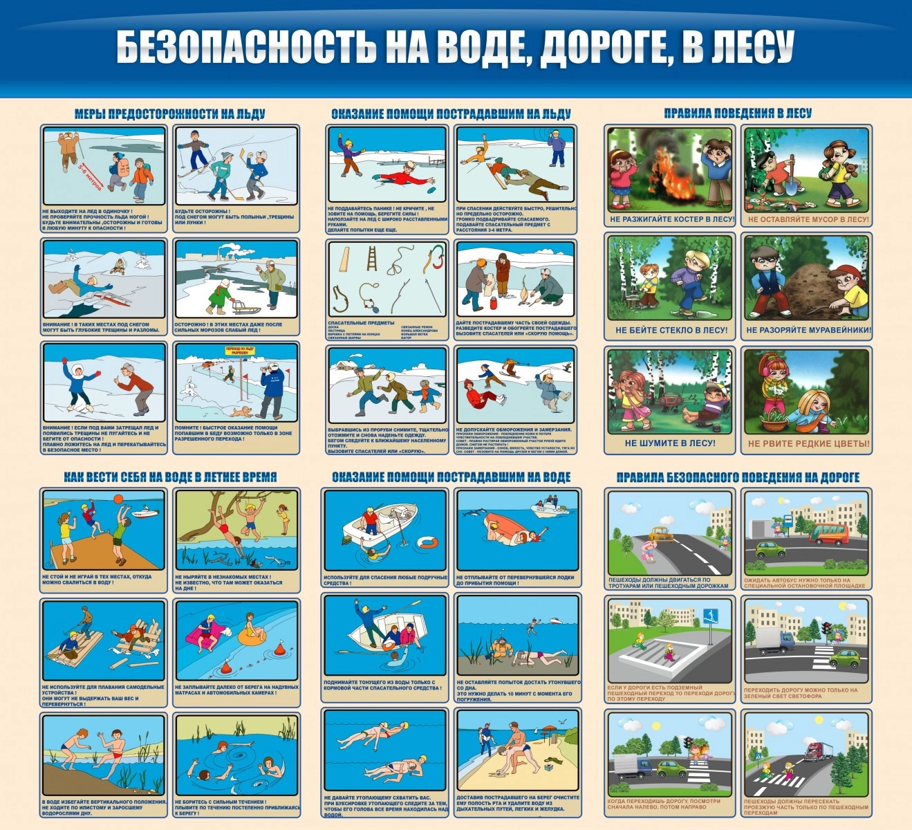 Стенд "Безопасность на воде дороге в лесу" арт. ШК-04190