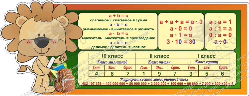 Стенд "Математика для начальных классов", резной арт. ШК-0484