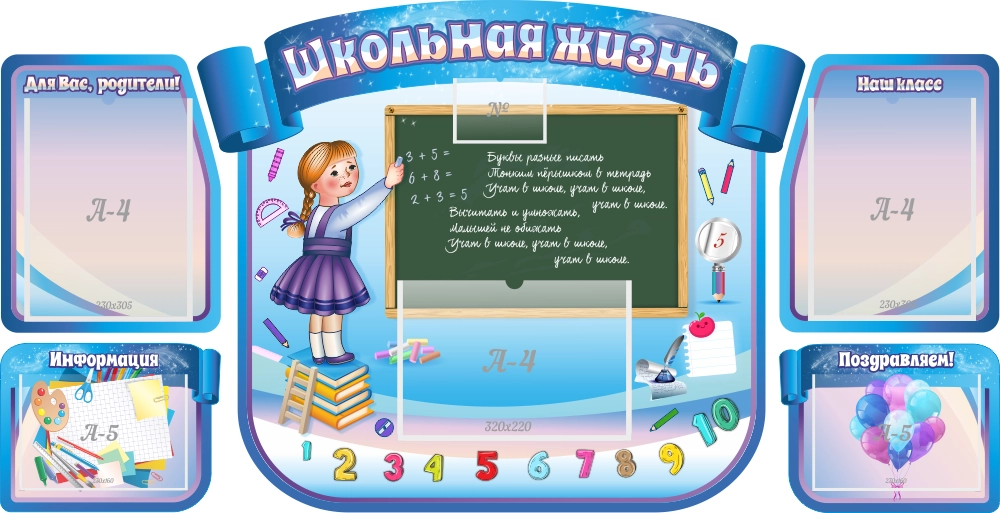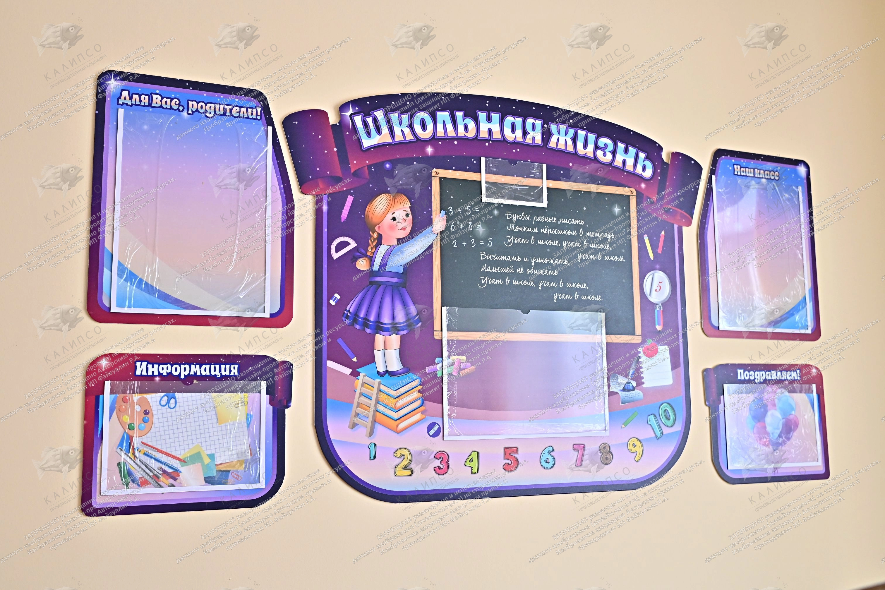 Стенд "Школьная жизнь" из 5-ти частей, резной арт. ШК-04201