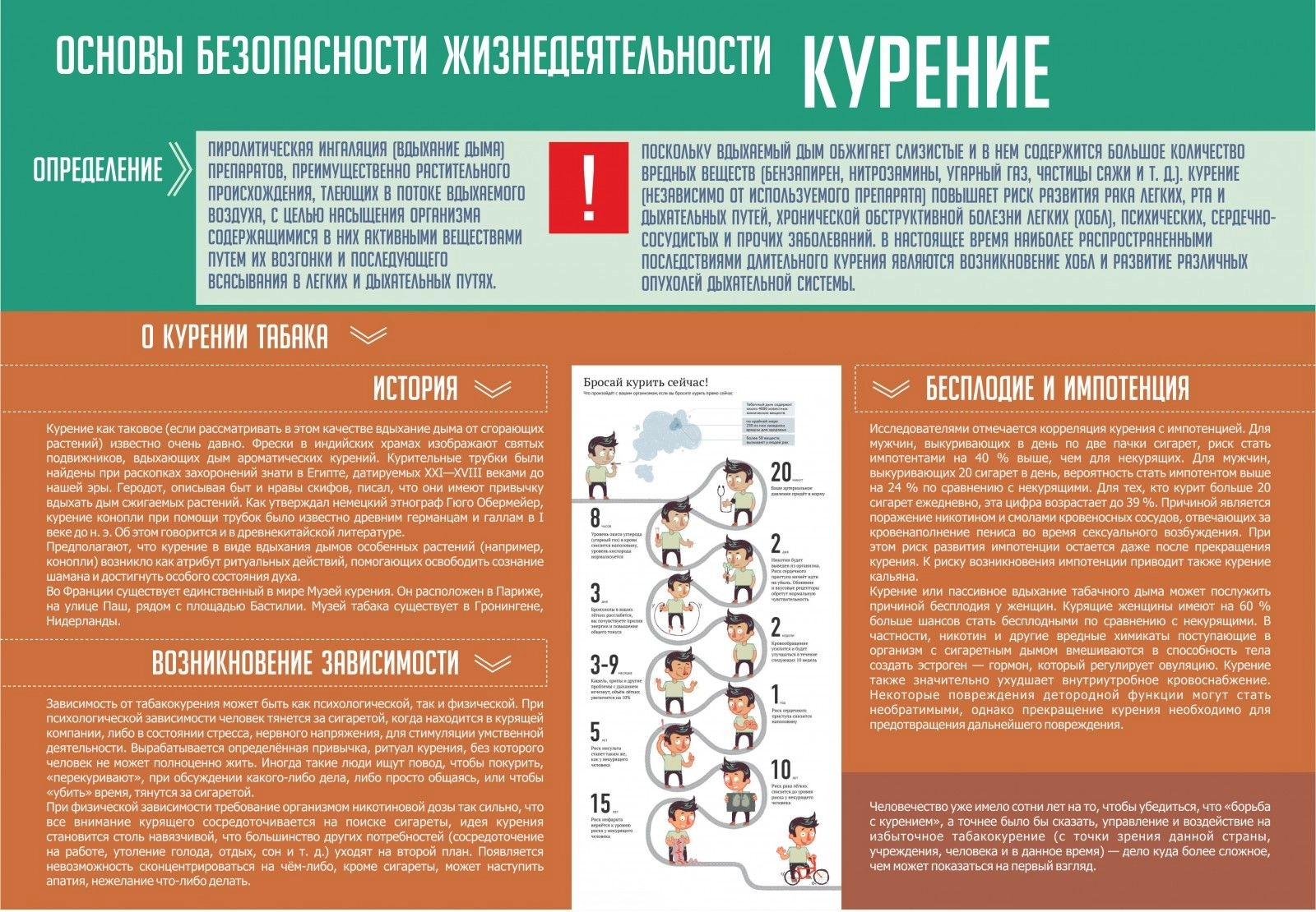 О вреде курения сегодня знает каждый, но какие последствия оно может принести, к сожалению, задумываются далеко не все. Стенд «Курение» создан именно для того, чтобы ученики образовательных учреждений знали всю историю происхождения табака и понимали то, как возникает зависимость к курению и к чему в конечном итоге это может привести. Стенд выполнен в ярких цветах с познавательными картинками и необходимым текстом, позволяющим в раннем возрасте формировать отрицательное отношение к курению. Выполнен стенд из современного материала ПВХ, легко крепящийся на саморезы или двухсторонний скотч.