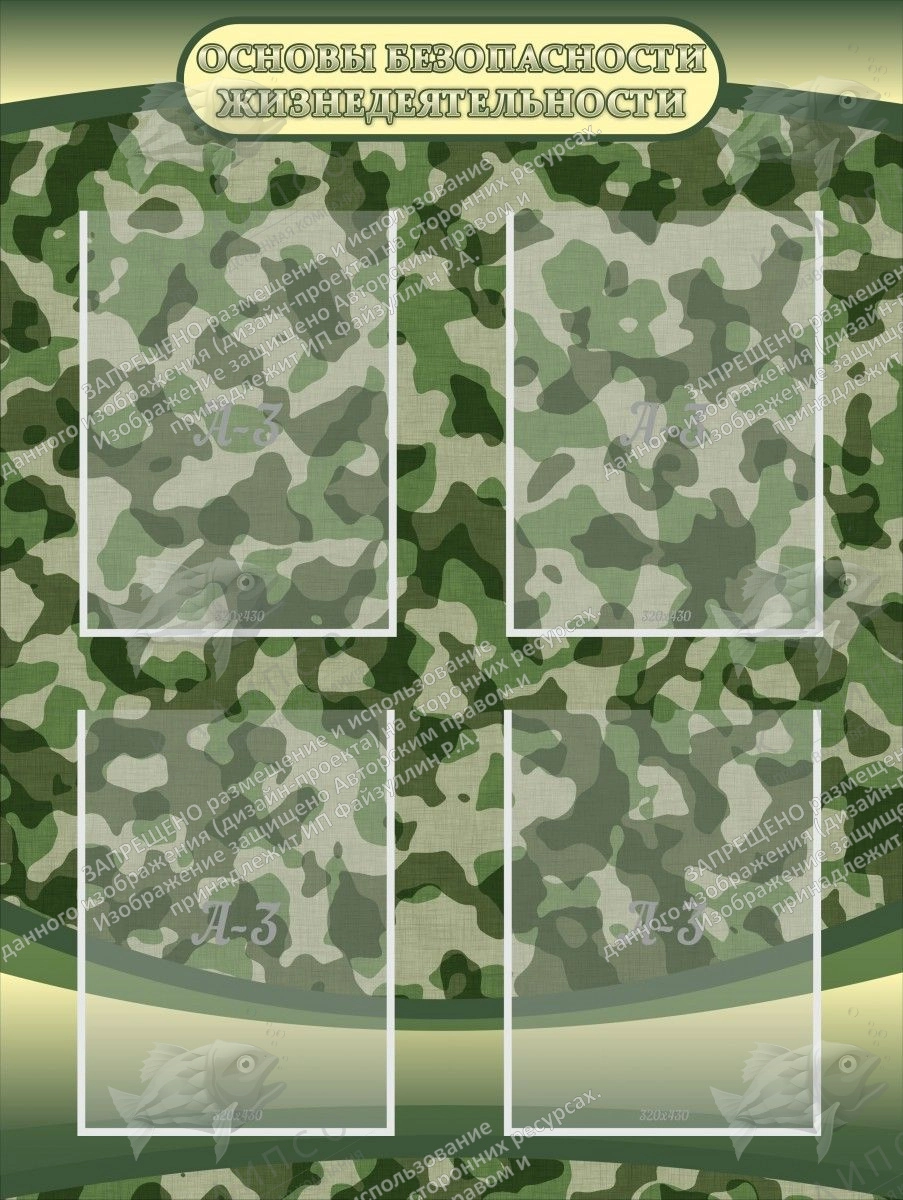 Стенд "Основы безопасности жизнедеятельности" с 4 карманами арт. ШК-1658