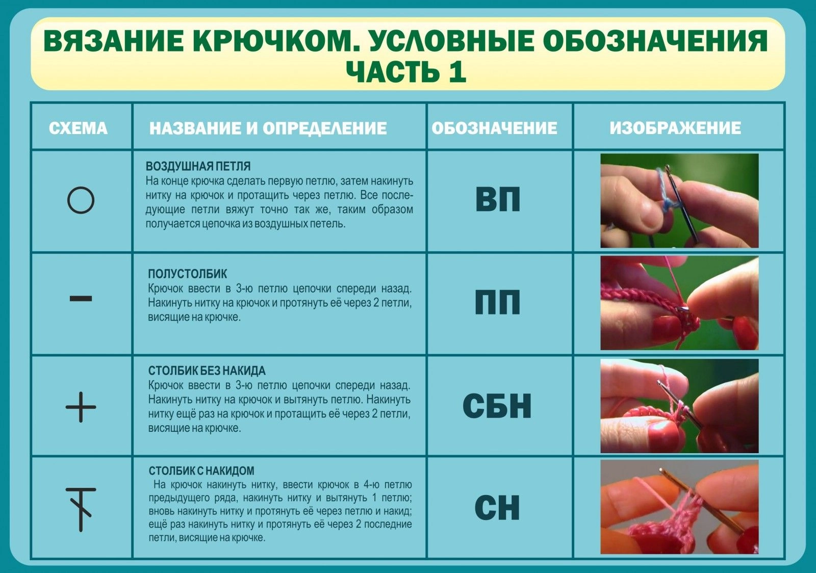 Девочки еще со школьной скамьи проявляют неимоверный интерес к вязанию крючком и часто даже пробуют что-нибудь себе связать. Стенд «Вязание крючком. Условные обозначения. Часть 1» выполнен для того, чтобы наглядно показать ученицам образовательных учреждений все обозначения, которые существуют, и определения петель, сделанных крючком. Небольшие красочные рисунки, расположенные с правой стороны стенда, помогают хорошо понять, как делается та или иная петля с помощью крючка, а красивый яркий фон голубого оттенка не позволит мимо пройти ни одной юной школьнице, неравнодушной к вязанию.