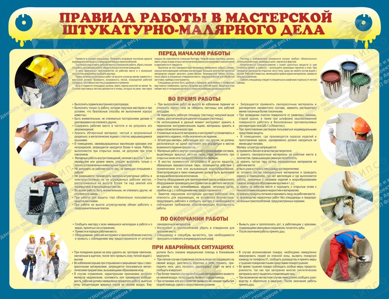 Стенд "Правила работы в мастерской штукатурно-малярного дела" арт. ШК-2015