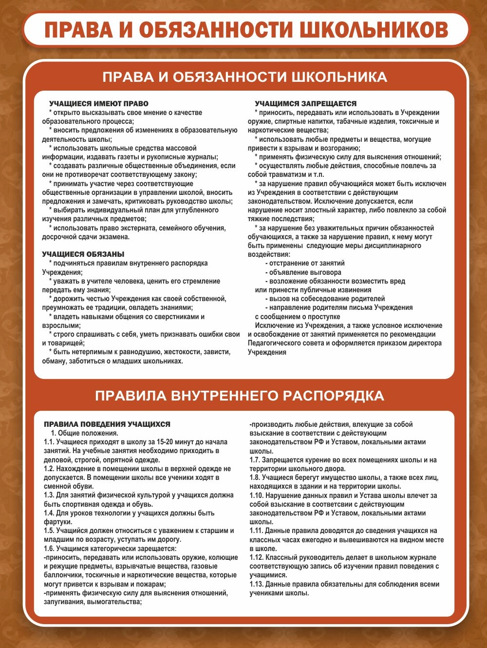 Стенд "Права и обязанности школьников" арт. ШК-02134