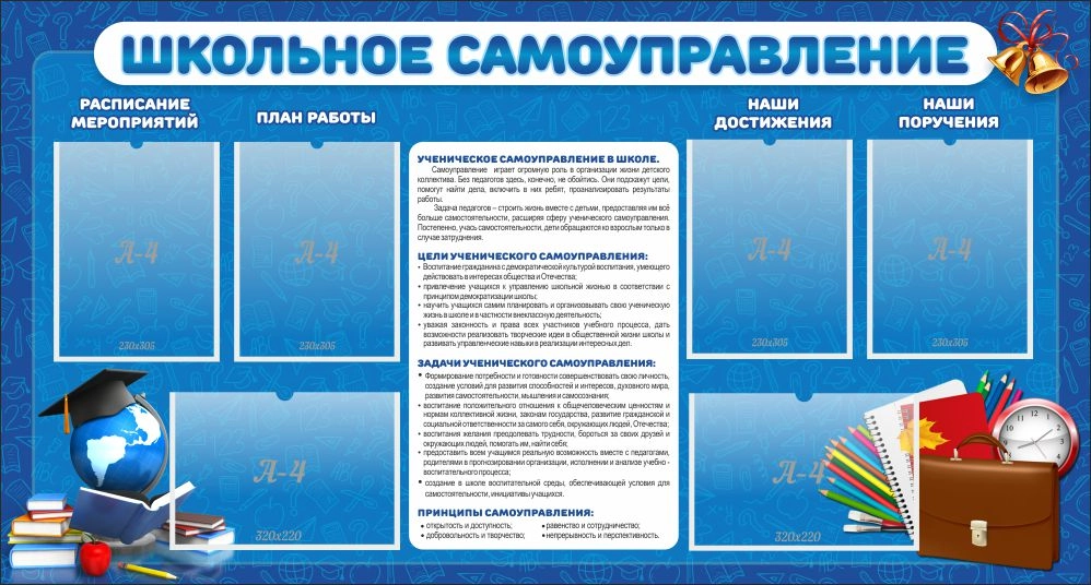 Стенд "Школьное самоуправление" с 6 карманами арт. ШК-02152