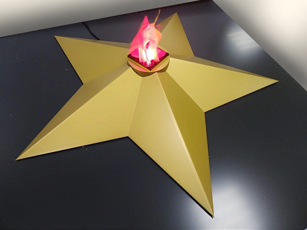 Подиум и звезда выполнены из композита алюминия, в центре звезды светодиодная имитация огня.