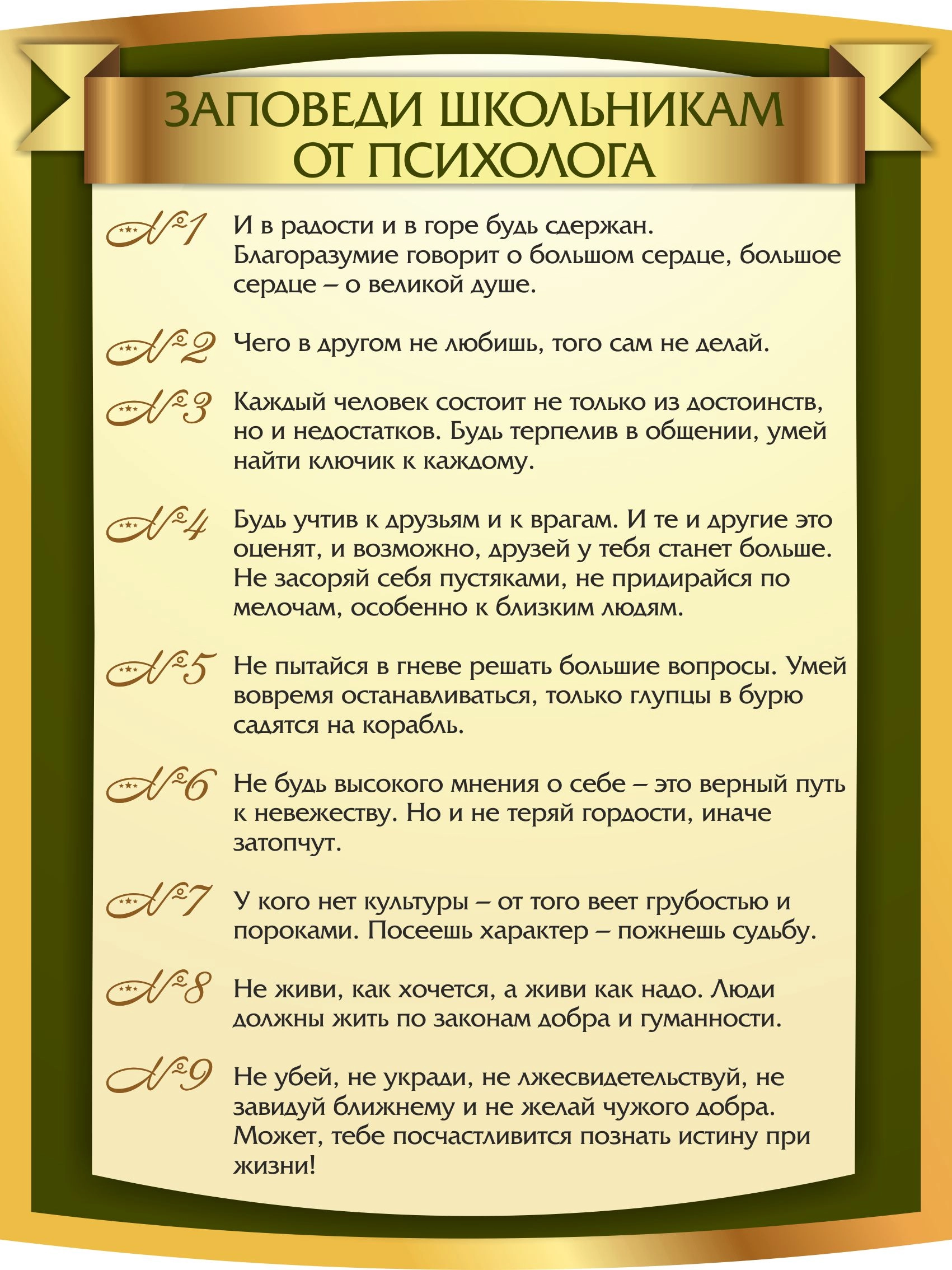 Стенд "Заповеди школьникам от психолога", резной арт. ШК-02123