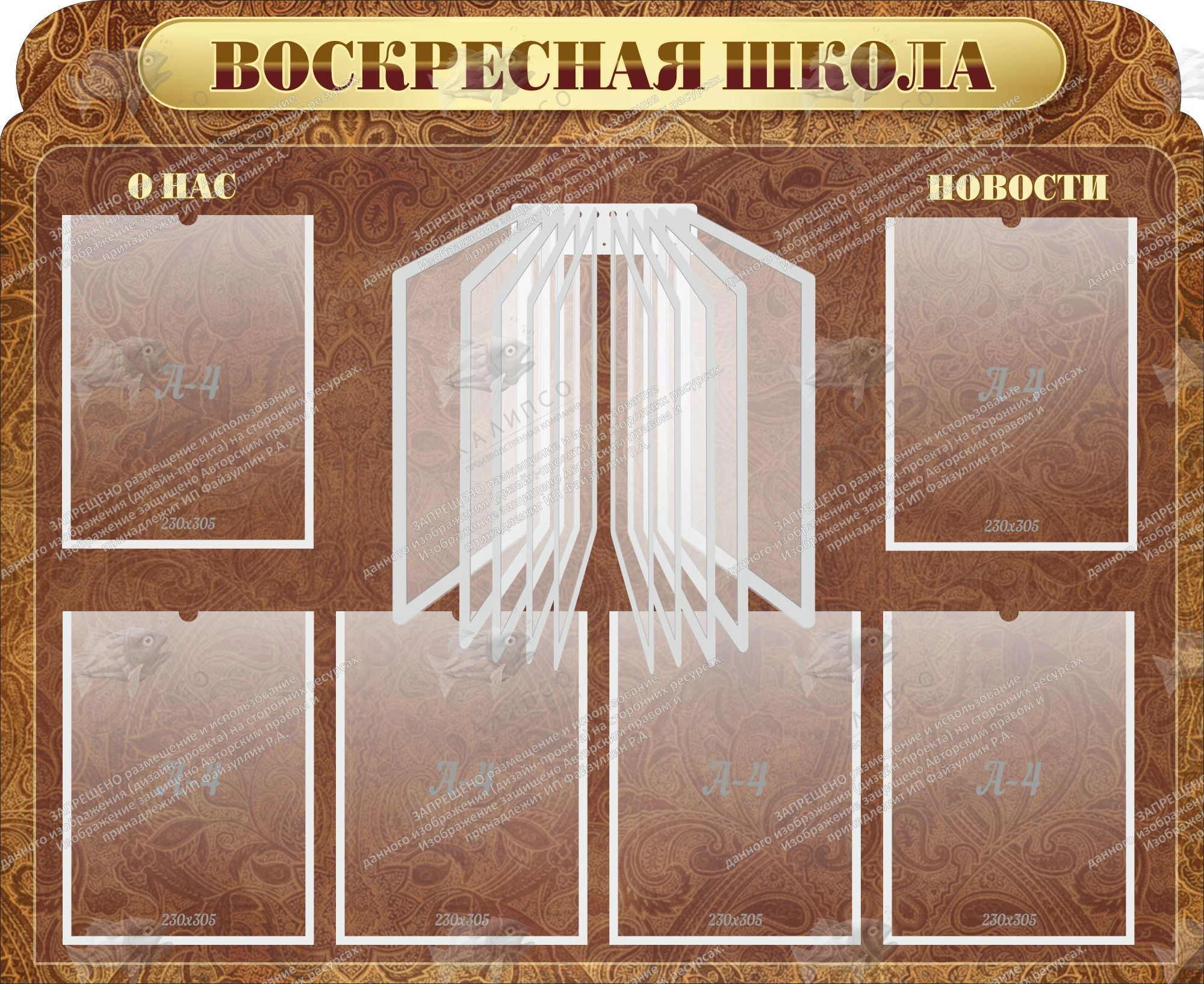 Стенд "Воскресная школа" с перекидной системой на 10 карманов А4, резной арт. ШК-02170