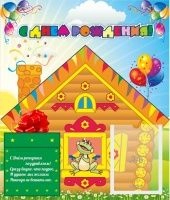 Малышей в группе так много, как же не забыть поздравить каждого с днем рождения? В этом поможет яркий стенд, в информационном кармане которого можно поместить фотографию именинника. Веселая лягушка, сидящая на окошке избушки, прочтет красивый стих. Яркая картинка, украшенная воздушными шариками, подарит сказочное настроение и теплые улыбки.
