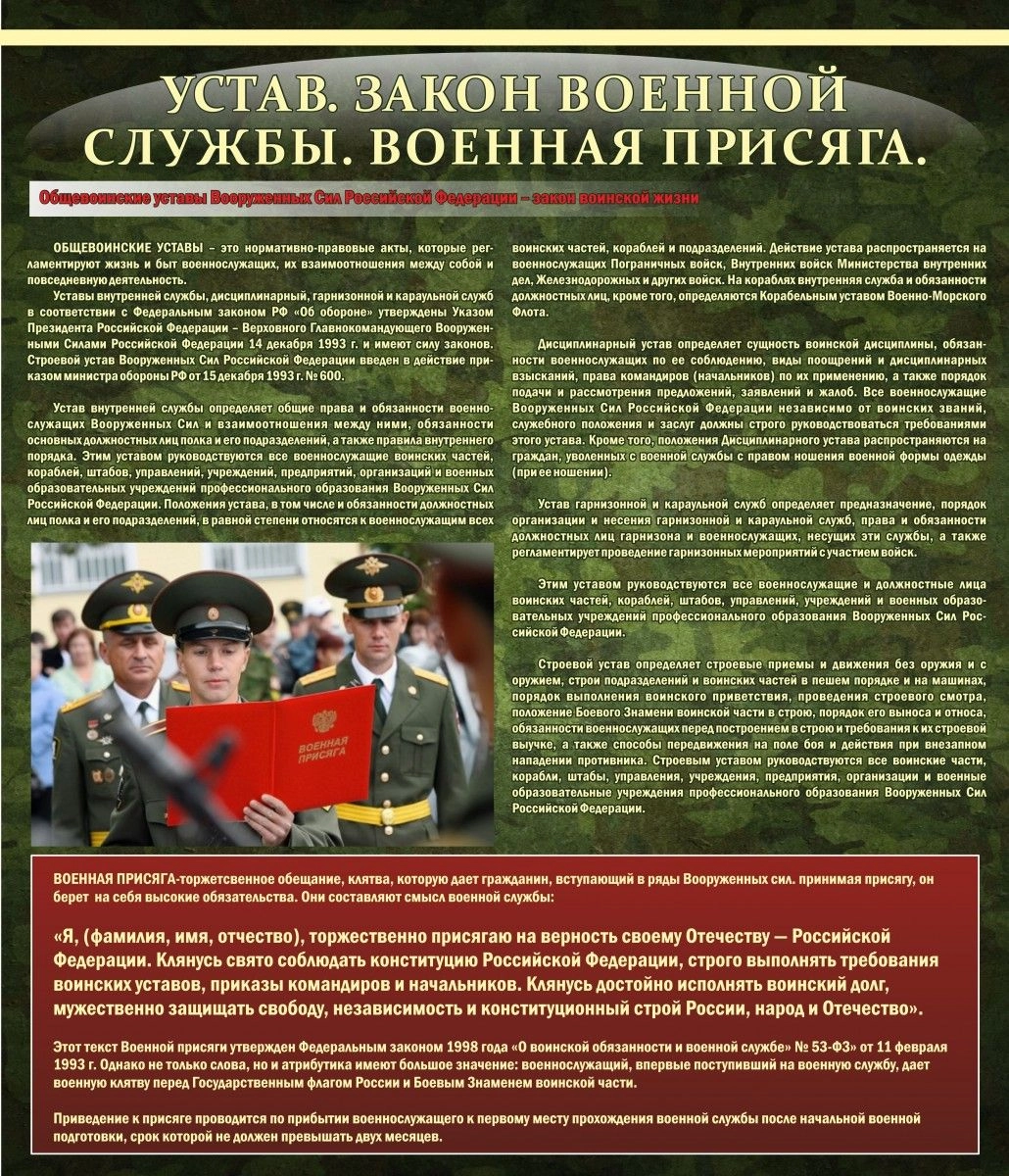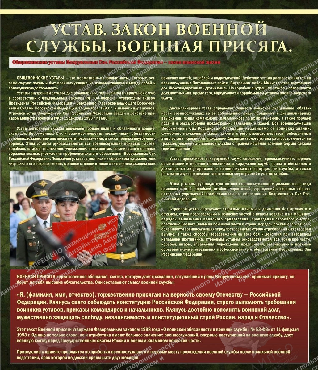 Стенд "Устав Законы военной службы Военная присяга" арт. ШК-1650