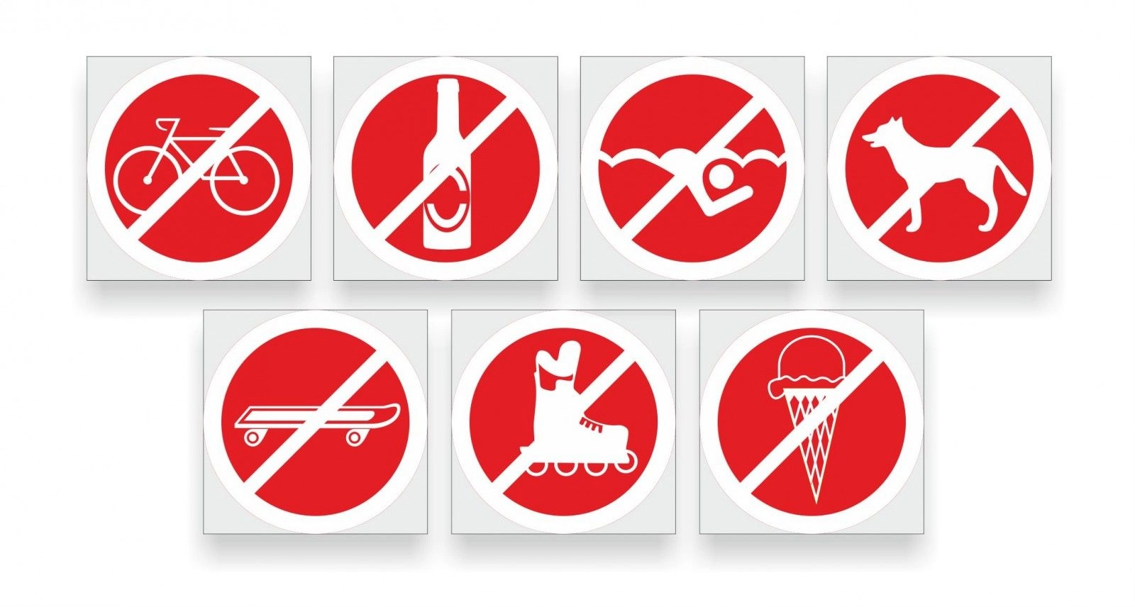 Рекламный или информационный указатель должен находиться в зрительной доступности для человека, и поддерживать стиль магазина. Чаще всего таблички располагаются группой и информируют посетителей сразу о нескольких ограничения. Таблички-ограничители могут нести такую информацию как вход с животными, напитками или едой запрещен. Таблички сделаны в виде квадрата, в котором изображен перечеркнутый круг с изображение того что запрещено. Указатели сделаны из пластика толщиной три миллиметра имеют качественную печать и крепятся при помощи болтов, саморезов или двустороннего скотча.