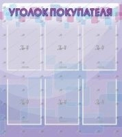 Стенд имеет возможность разместить в своих карманах шесть листов. Здесь может присутствовать информация о магазине, о продаваемых товарах и другая полезная информация. Уголок для покупателей достаточно большого размера и сделан полностью из пластика. Абстрактная картинка фиолетового и синего цветов напечатана по высококачественной технологии. Вывеска имеет небольшой вес, что весьма облегчает установку изделия. Табло вывешивается на стену при помощи саморезов. Изысканная простота понравится вашим посетителям и они с удовольствием прочтут информацию находящуюся в этом уголке.