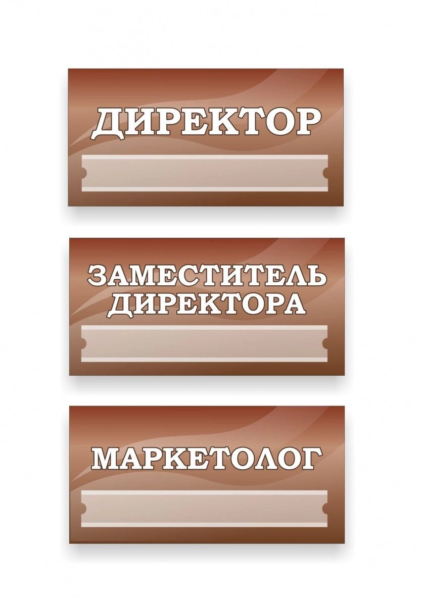Имидж у каждого бизнес-центров свой. В наше время стало широко применяться современное направление в дизайне. Данная вывеска как раз подходит под применение в современном стиле. Она имеет прямоугольную форму с закруглением сверху. Посередине табличке распложен текст с указанием соответствующего кабинета. Рядом наши дизайнеры решили изобразить круг с номером помещения. Такой ход весьма удобен, когда учреждение имеет несколько этажей и на каждом из них схематично показан план здания с цифрами помещений. При таком планировании навигация сотрудников, посетителей и клиентов упростится.