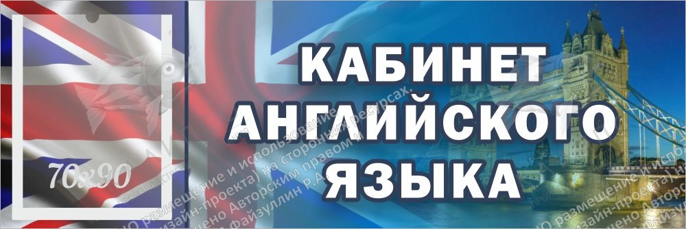 Табличка "Кабинет английского языка" с карманом арт. ШК-0143