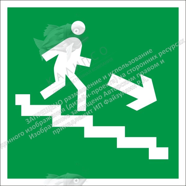 Наклейка Е-13 "Направление к эвакуационному выходу по лестнице вниз" арт. ПЭ-0205